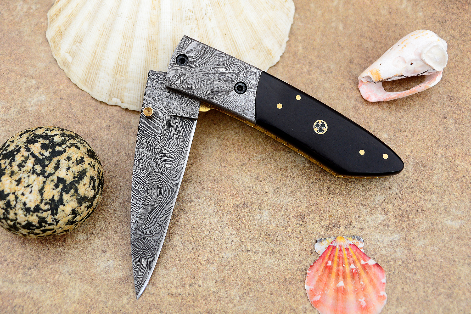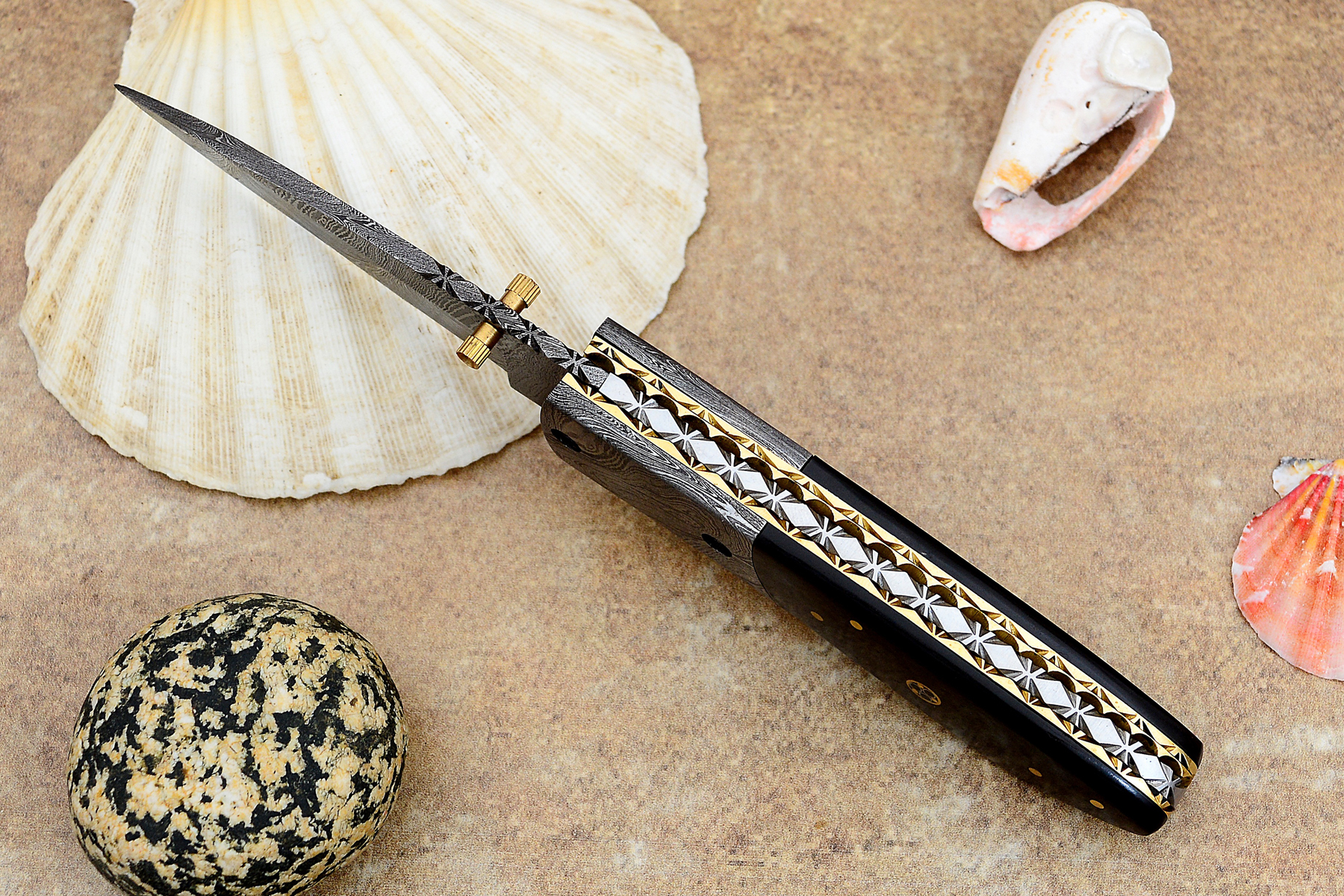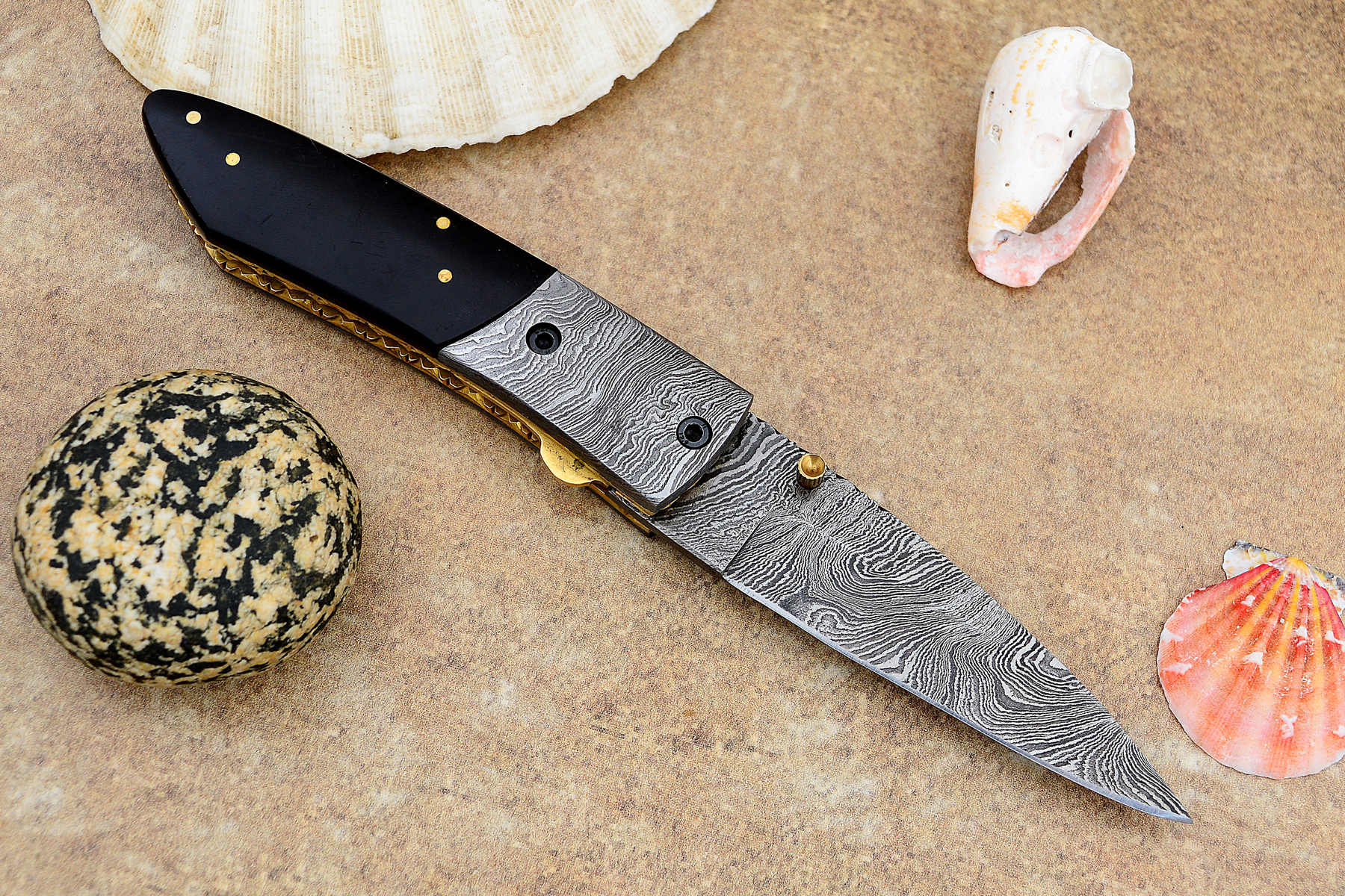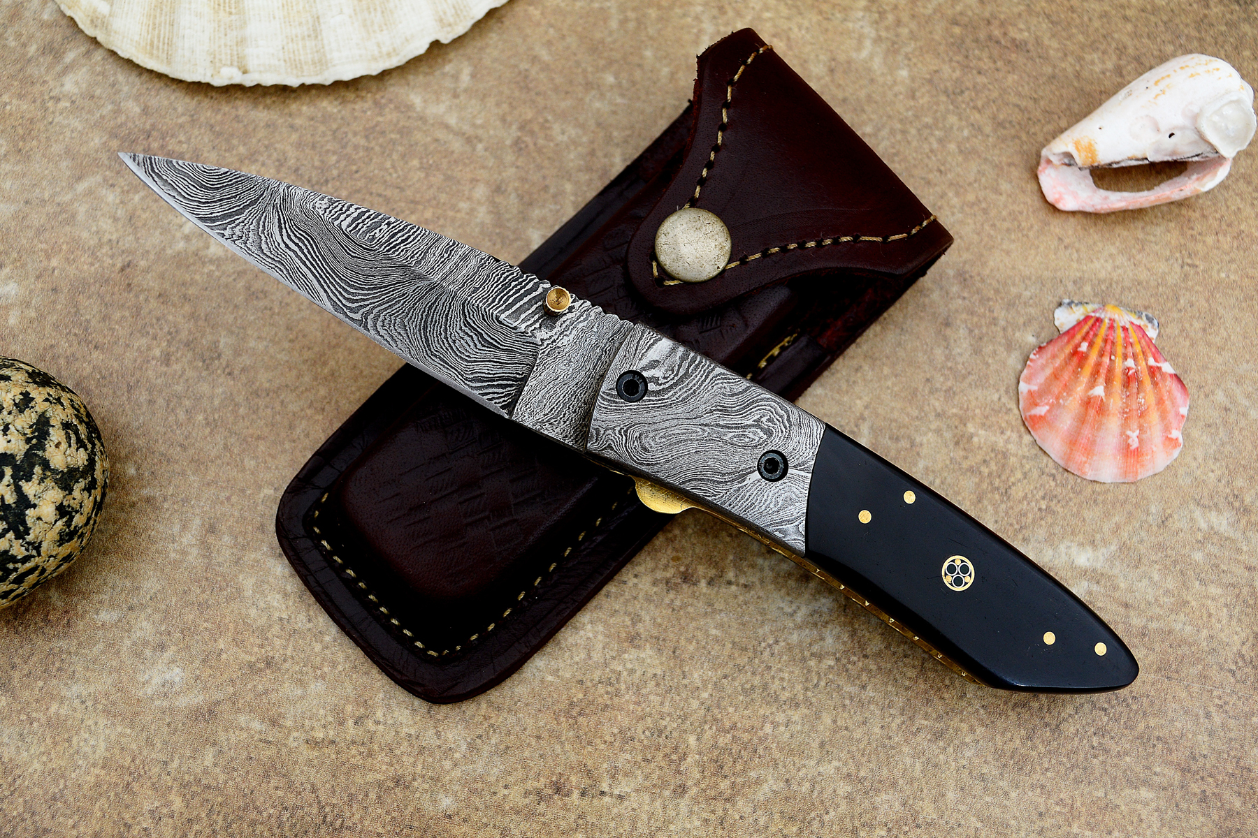 Damascus Pocket Knife, Hand Engraved Knife, Gift Knife, Hard Steel Knife, Small Pocket Knife, Hunting Knife, Hunting Equipment, Fishing Knife, wooden Grip Knife