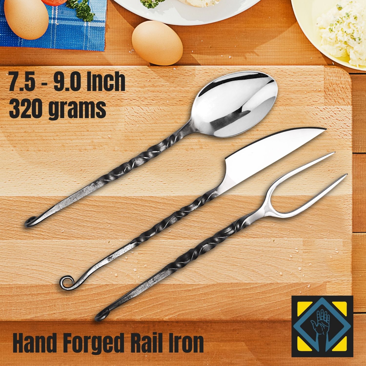 Making involves hand forged tempered rail road iron with food grade polished for regular use.