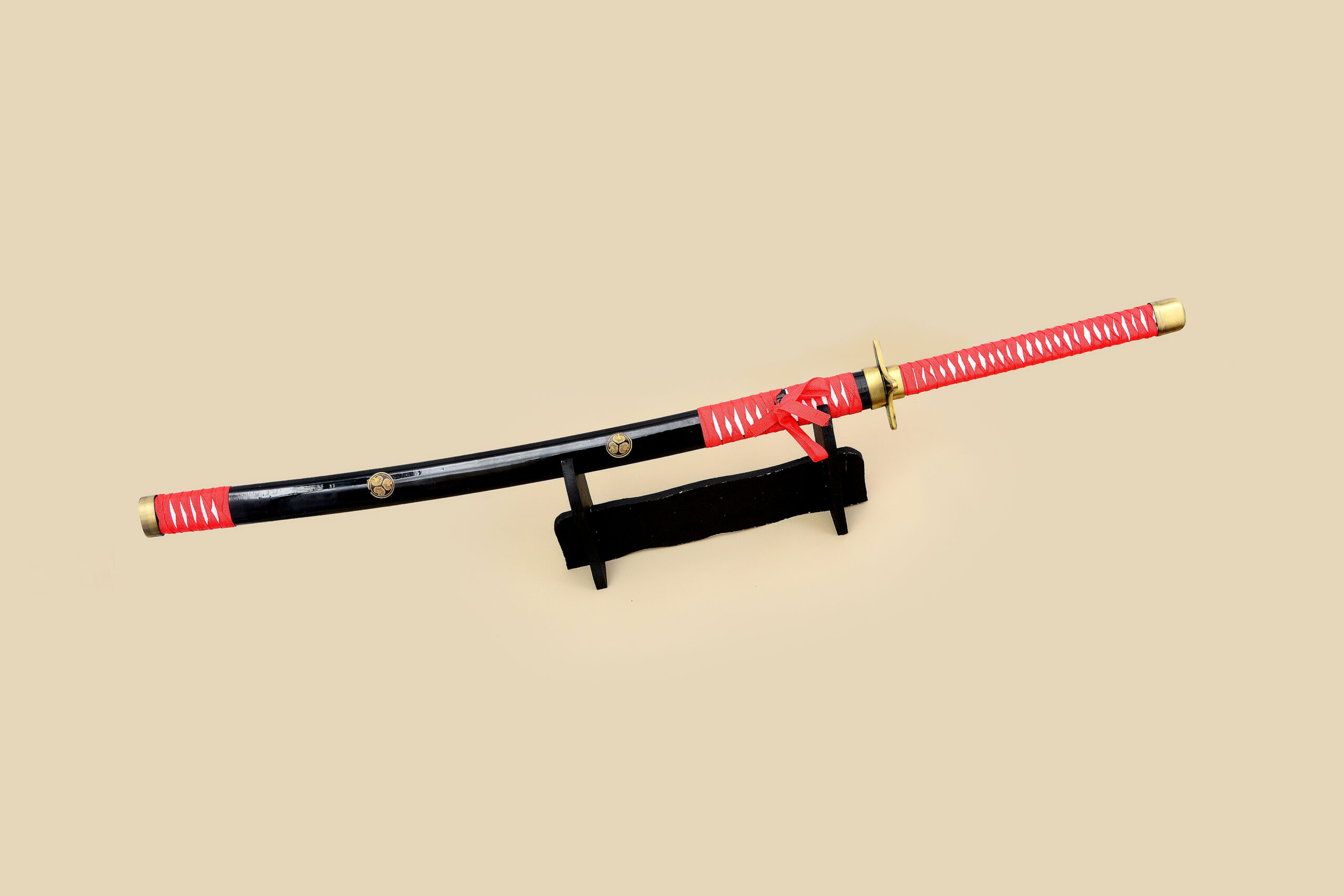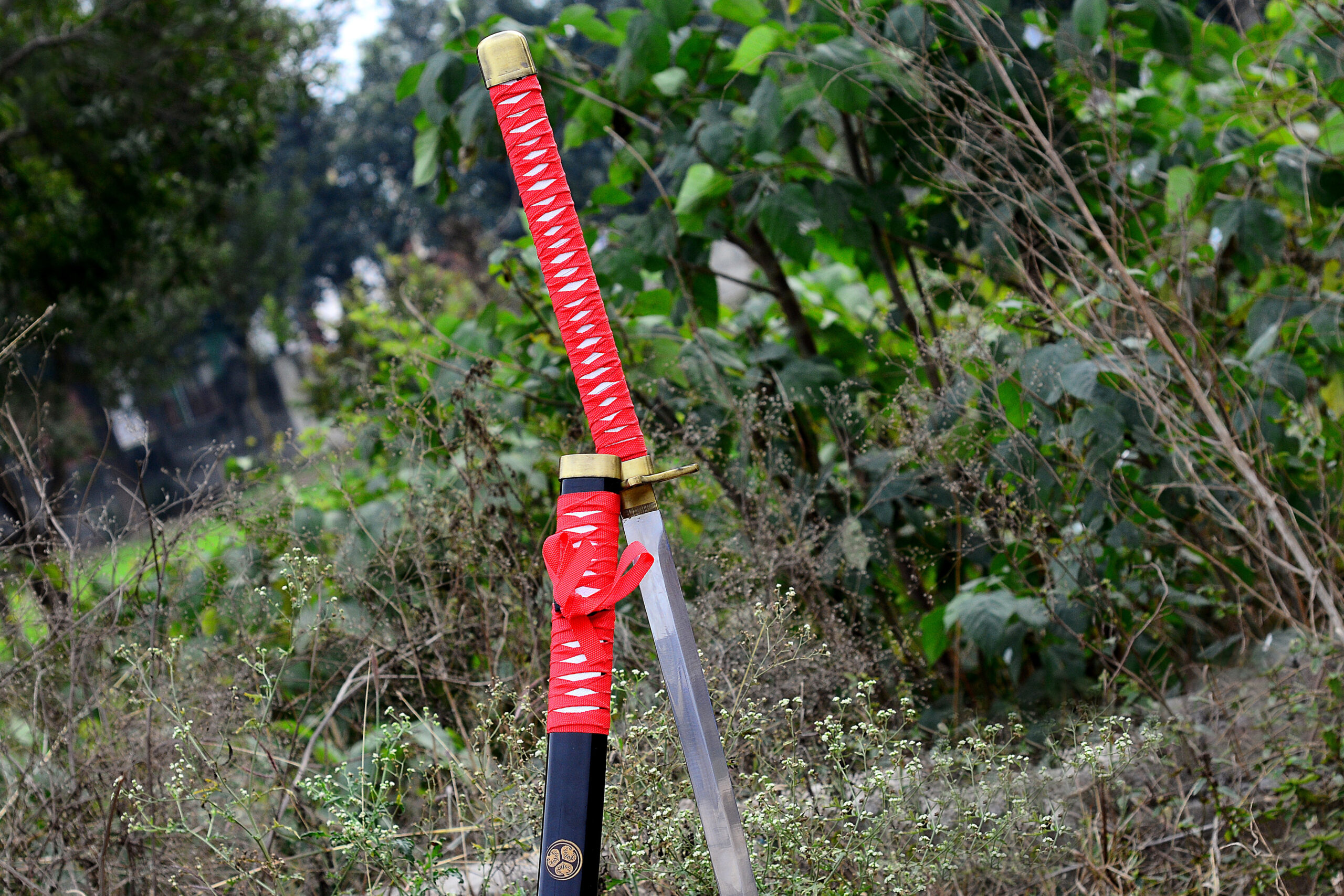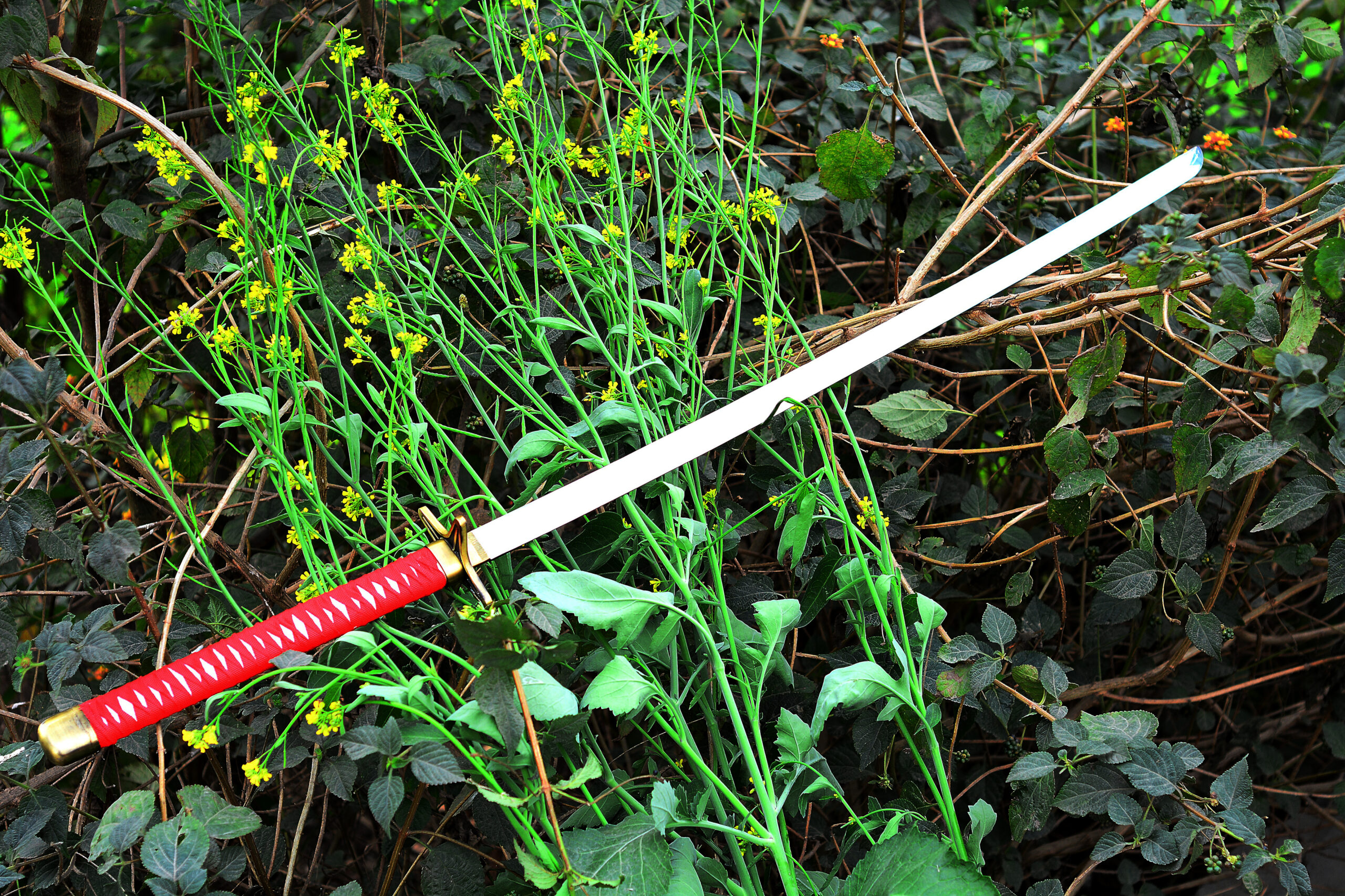 Details: – Handmade Ninja sword with D2-hard stainless-steel blade. Rust free durable blades can easily be sharpened at home. Easy to grip and light weight sword can also be use as decorative product because of its wooden stand.
