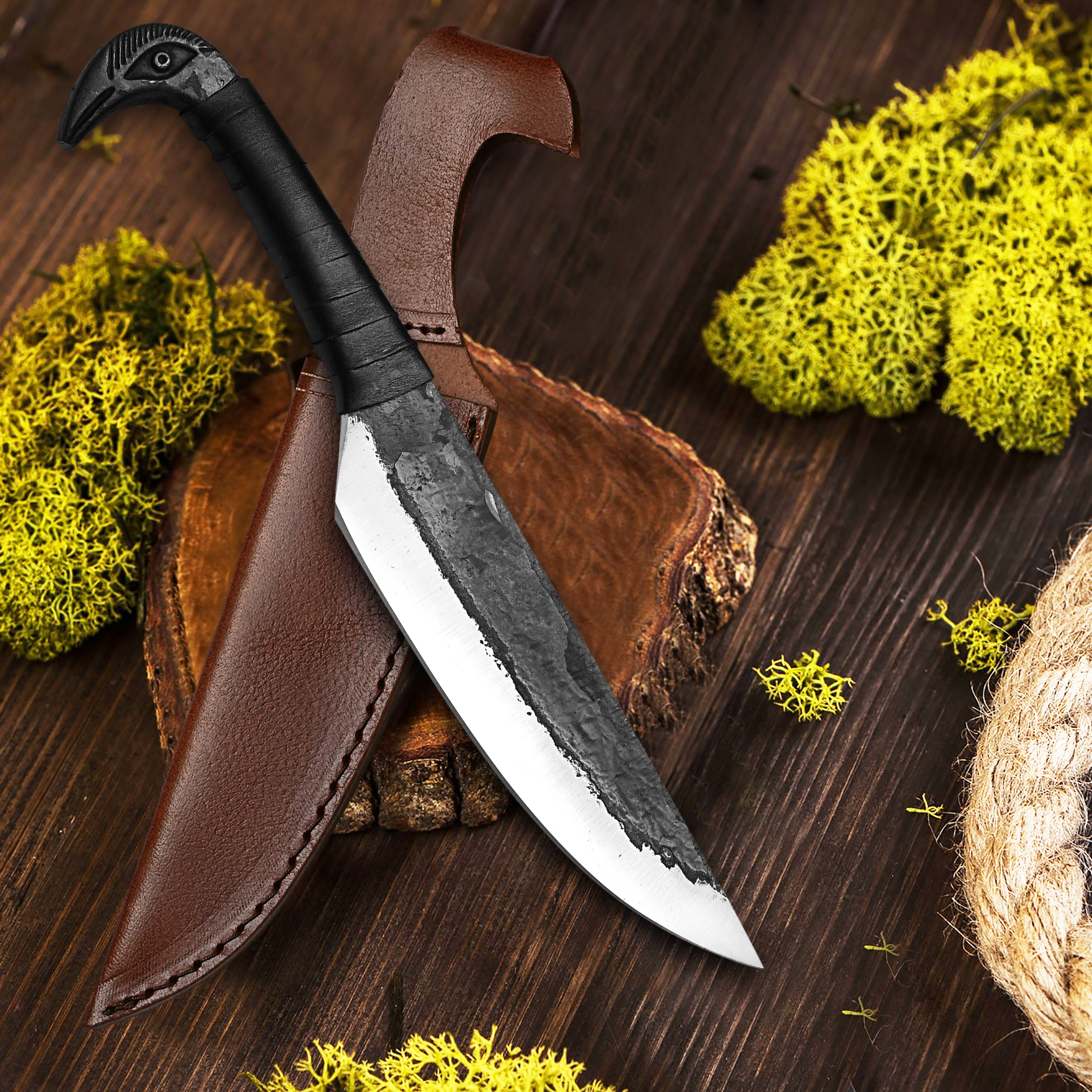 Take your medieval knife collection to the next level with the Vikings Brand premium Odin’s Raven knife. Hold the knife of Odin, King of Asgard in your hands and embrace your Norse heritage. Making involves hammer forging of hard tempered railroad iron to give it a nice and antique shape in one piece. Shapes and designs are taken from ancient and stone age exhibits. We make it joint less to make it stronger and holds its sharpness for long time and easy to sharpen at home. This is a best choice who like to have antique collections, who used to go for camping, hunting and hiking and always need a trustworthy tool with them.